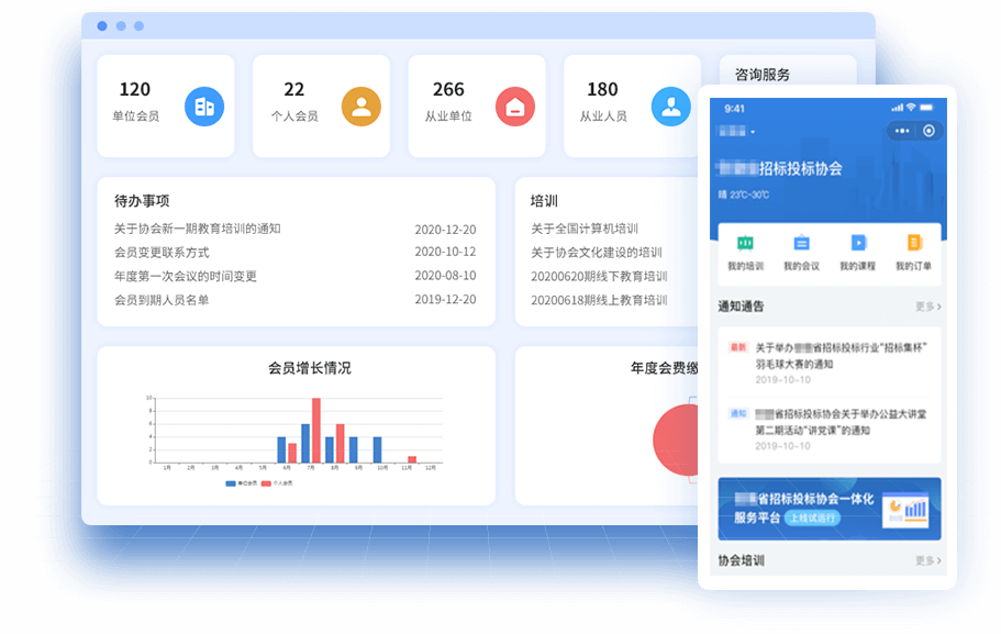 安訊協(xié)會一體化服務(wù)平臺,是按照“互聯(lián)網(wǎng)+社會組織”的理念,采用 “云計算、大數(shù)據(jù)”等先進(jìn)信息技術(shù),立足協(xié)會服務(wù)會員、規(guī)范市場秩序、開展行業(yè)自律等需求,建立的一體化管理與服務(wù)平臺,集成會員、從業(yè)人員、從業(yè)單位管理,通知、培訓(xùn)、會議、咨詢、資源、直播服務(wù),以及門戶網(wǎng)站、移動應(yīng)用,實(shí)現(xiàn)協(xié)會各業(yè)務(wù)數(shù)字化整合,全面提升各方獲得感,為協(xié)會服務(wù)國家、社會、行業(yè)提供全面的信息化支撐。
